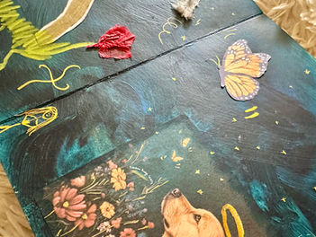 J'accompagne également les personnes endeuillées avec le Carnet de deuil, qui est un rite de passage que nécessite le deuil en explorant, exprimant et en vivant le deuil en profondeur grâce à la mobilisation de nos images intérieures et a la création de pages artistiques, ce qui permet une libération et une intégration tout en honorant la valeur sacrée de la perte.